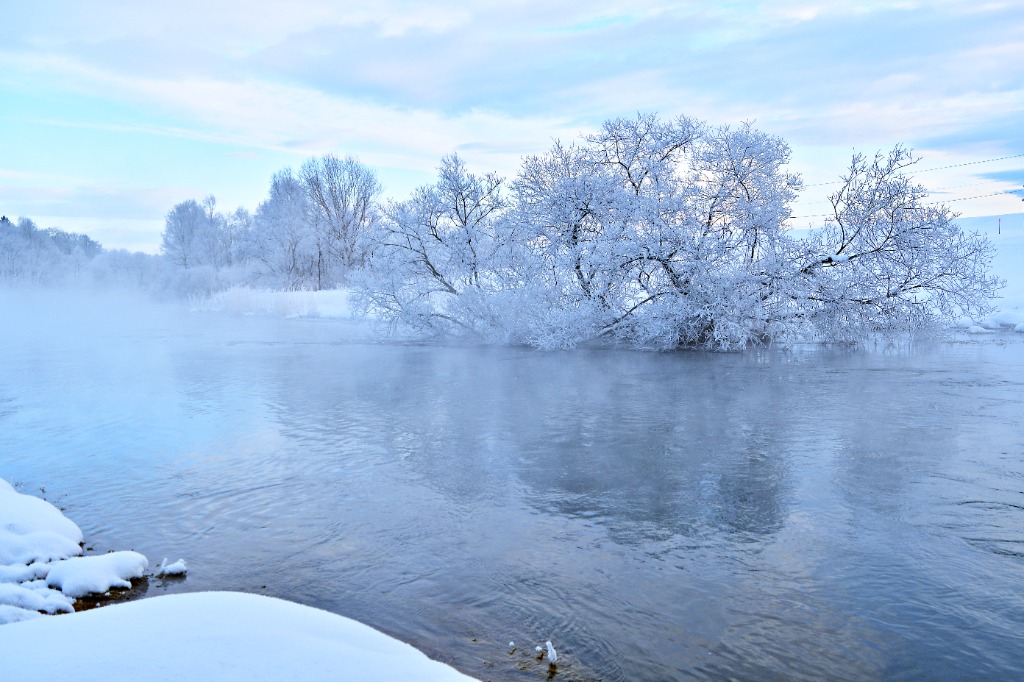 蒸気霧が漂う朝