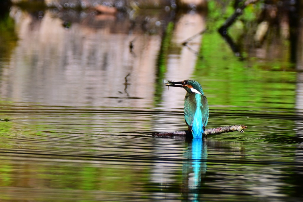 朝食中のカワセミ