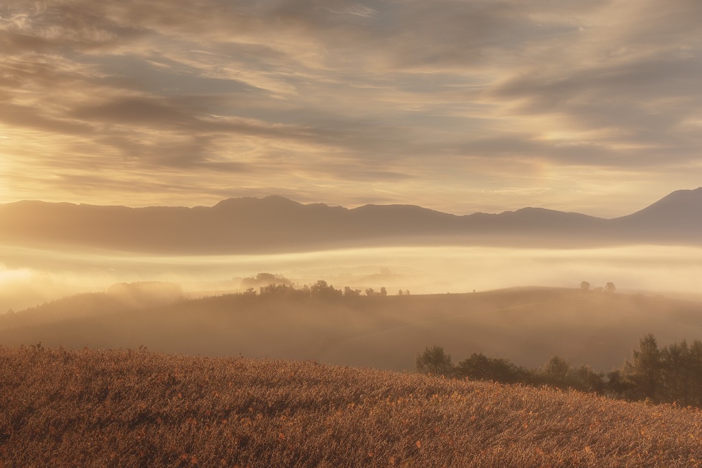 黄金の海と共に目覚める丘