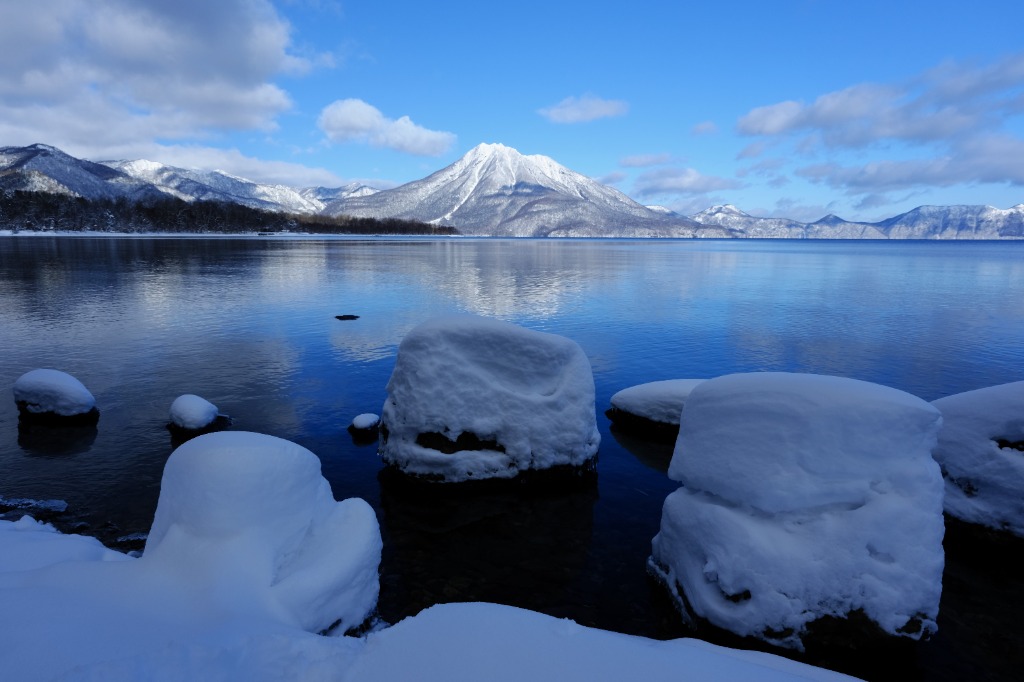 雪に埋もれる支笏湖