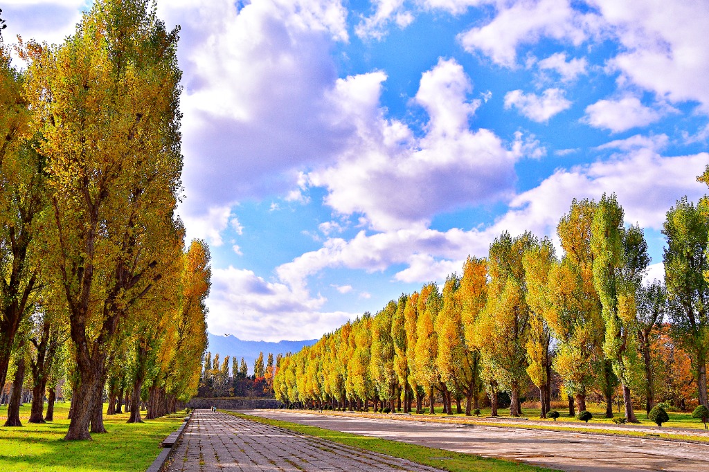 黄葉したカナールのポプラ並木