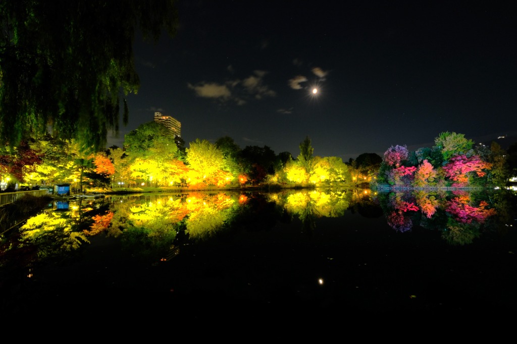 ライトアップで彩色された菖蒲池②