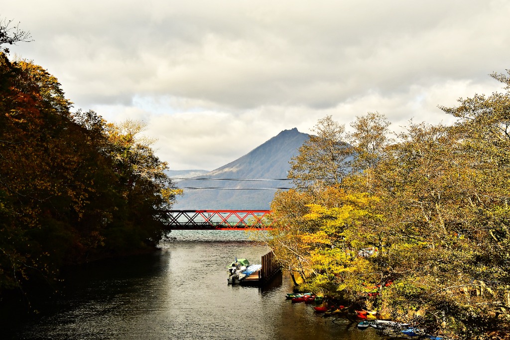 秋色の支笏湖