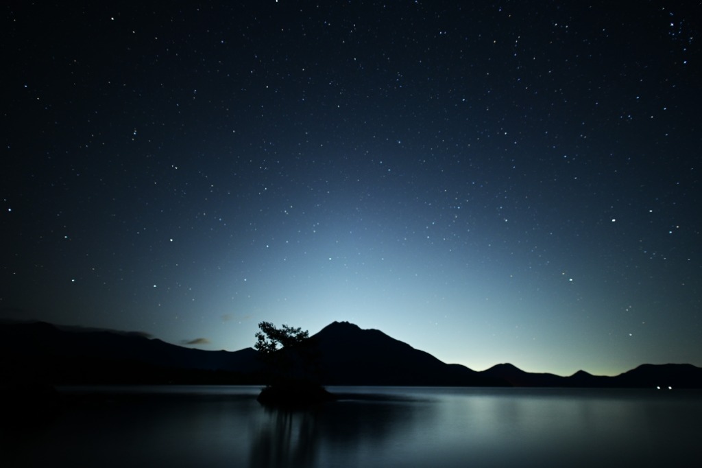眠りにつく支笏湖に浮かぶ恵庭岳